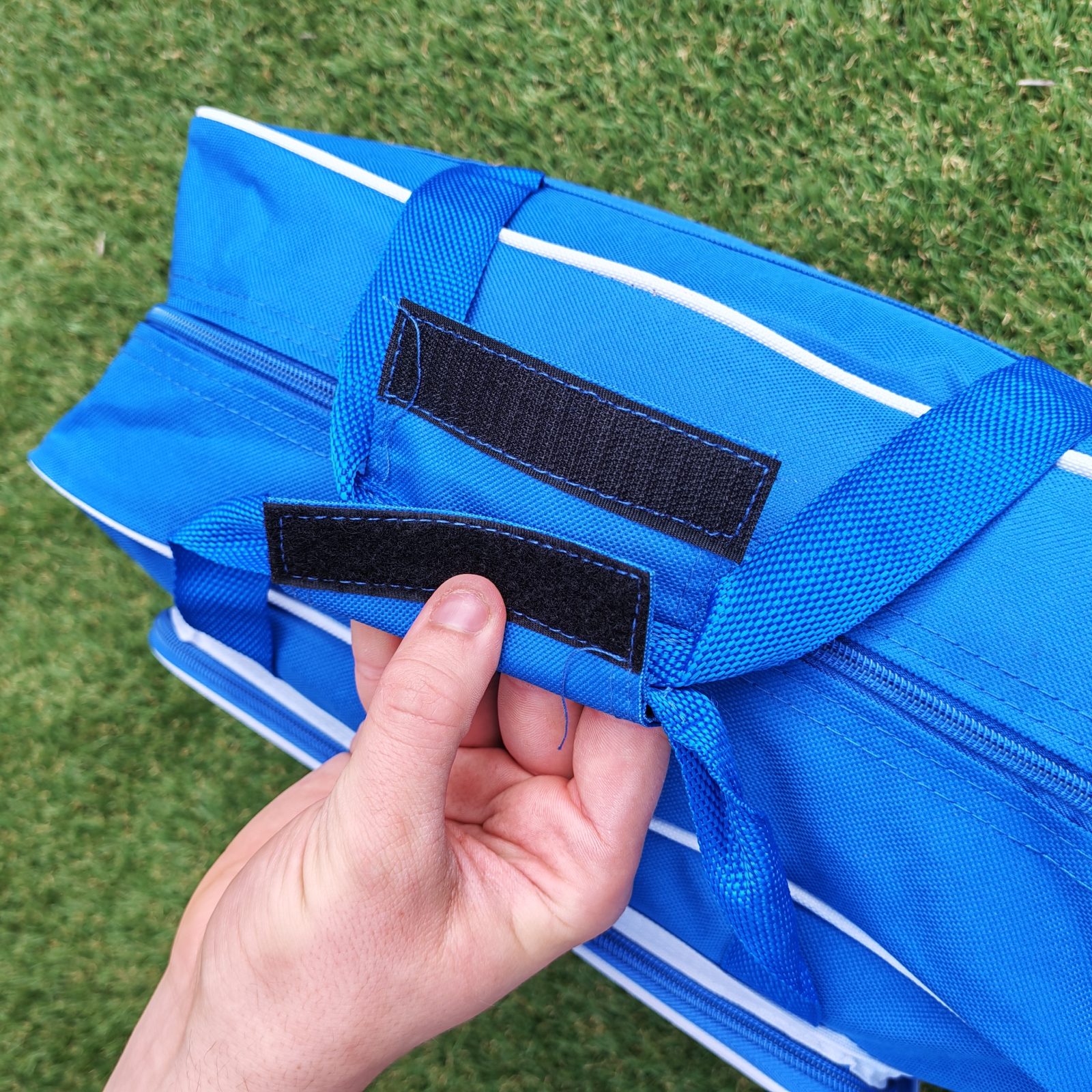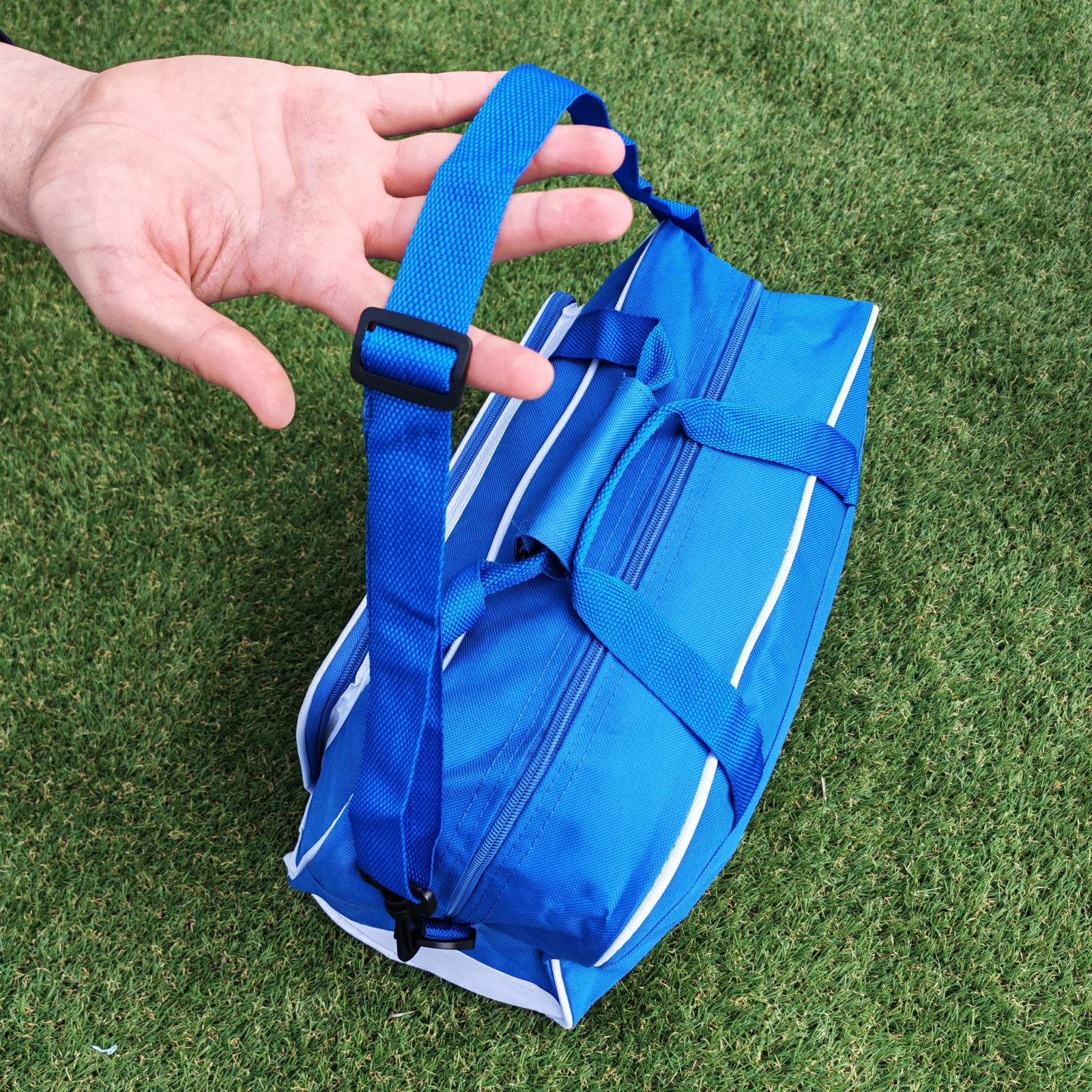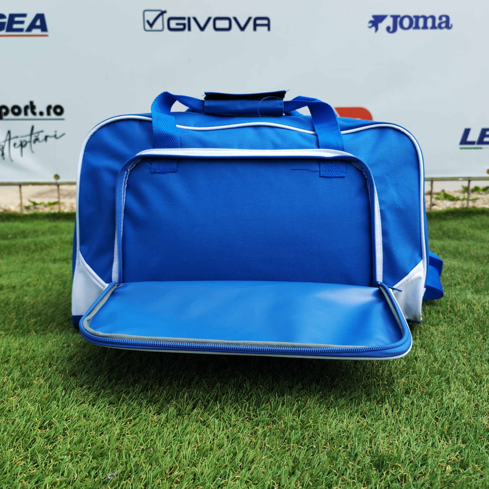 Geanta Nova din 100% poliester combină un design bicolor modern, fiind ideală pentru antrenamente sau călătorii. Dispune de un compartiment principal spațios și un buzunar exterior, ambele securizate cu fermoare asortate și întărite prin margini. Transportul este extrem de versatil datorită mânerelor cu închidere prin scai și curelei de umăr reglabile, dotată cu carabine duble pentru o fixare sigură.