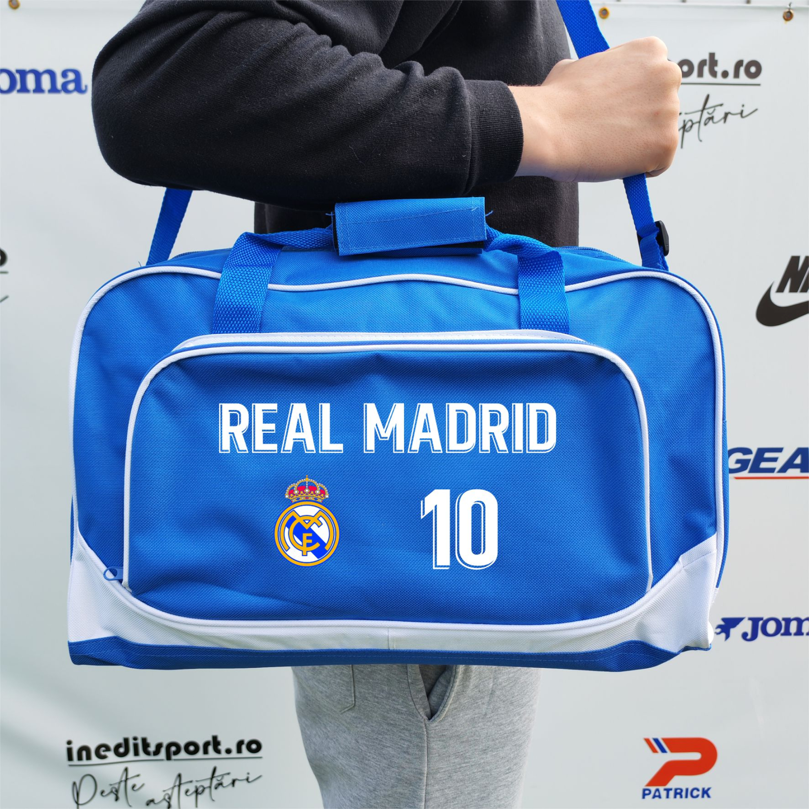 Geanta poate fi personalizată cu logo-ul echipei, numele și numărul preferat, poziționate pe buzunarul din față.